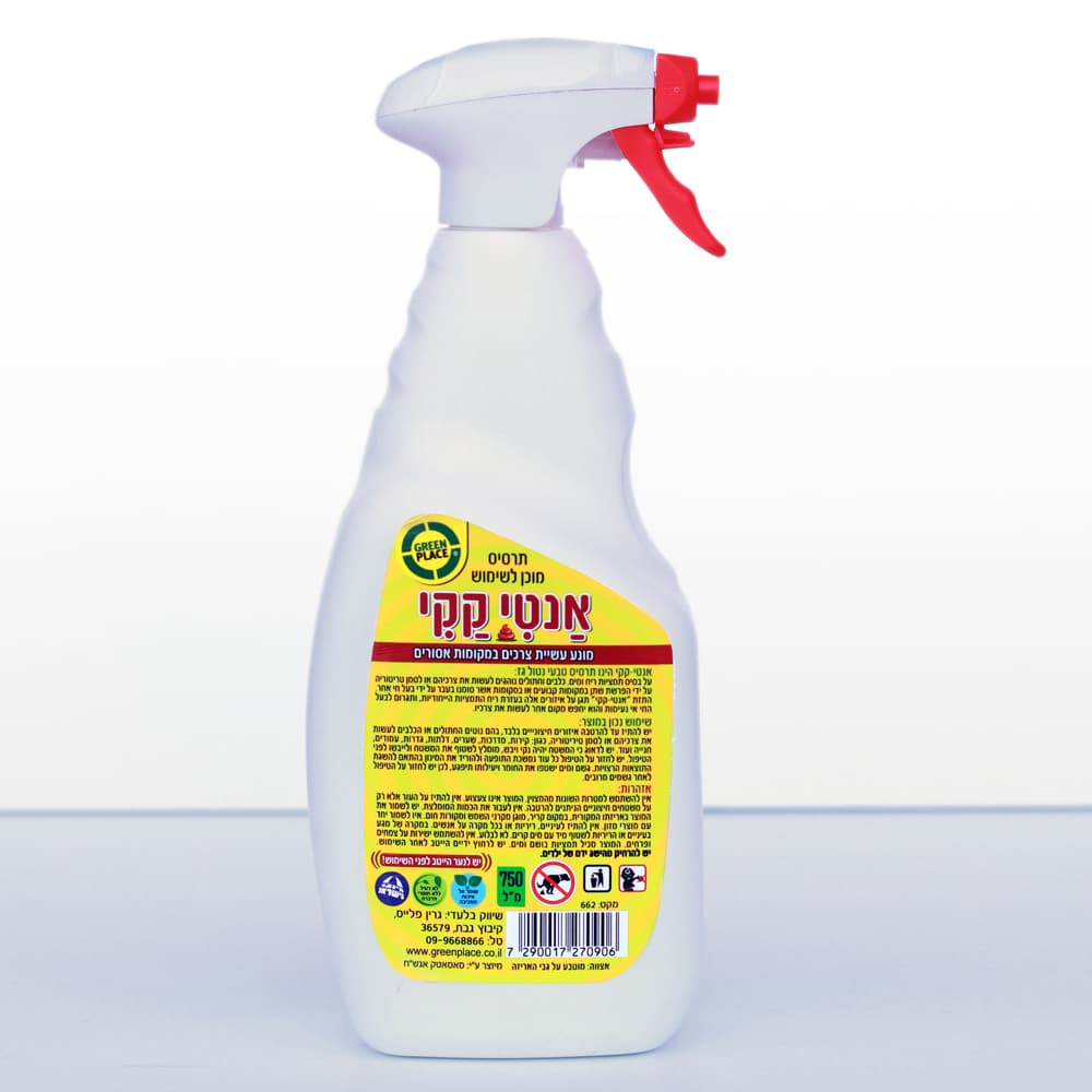 אנטי קקי הינו תרסיס טבעי נטול גז. התרסיס הוא על בסיס תמציות ריח ומים.